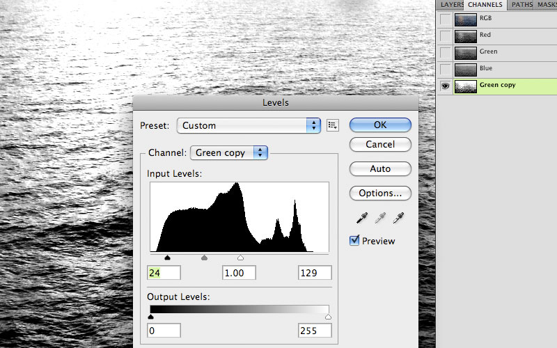 This rig has a lot of yellow and could use a bit of color to give it more interest. Also, in the photo I was using as reference, there was a big red and white boom sticking out at the corner. By now, it should be second nature to build something like this, right? Use the Line tool to make vector Shape layers. Build the ladder with perpendicular lines, then duplicate the paths and Transform them into position. Inner Shadow and Bevel and Emboss effects will help to give it roundness. Paint on clipped layers. To tie things together, pick a red from the other platform. Since you added atmospheric perspective to knock the rig into the background a bit, do the same for this tower. Make the Color Overlay's Opacity half of what you used for the yellow rig. I used 10%, so this structure will be 5%. Adjust the Gradient Overlay so that the color is at the bottom of the boom and fades away toward the top. This will help it to come forward and stand out from the background. Do any needed painting touch-ups on a new layer and the image is done.
